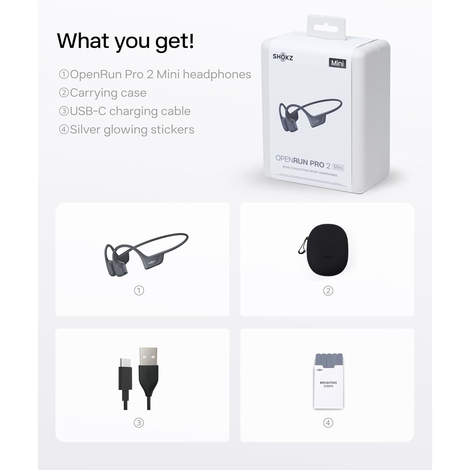 Meet OpenRun Pro 2 Mini,(Mini size has a 20mm smaller headband than standard). the all-new flagship headphone from Shokz that rewrites the rules of open-ear audio, superpowered by Shokz DualPitch. This new technology is about a perfect duet between a bone conduction and air conduction speaker, of which the former handles mids and highs with total precision, while the latter releases controlled, subterranean bass. The result is an unparalleled listening experience that's as clear as it is powerful.