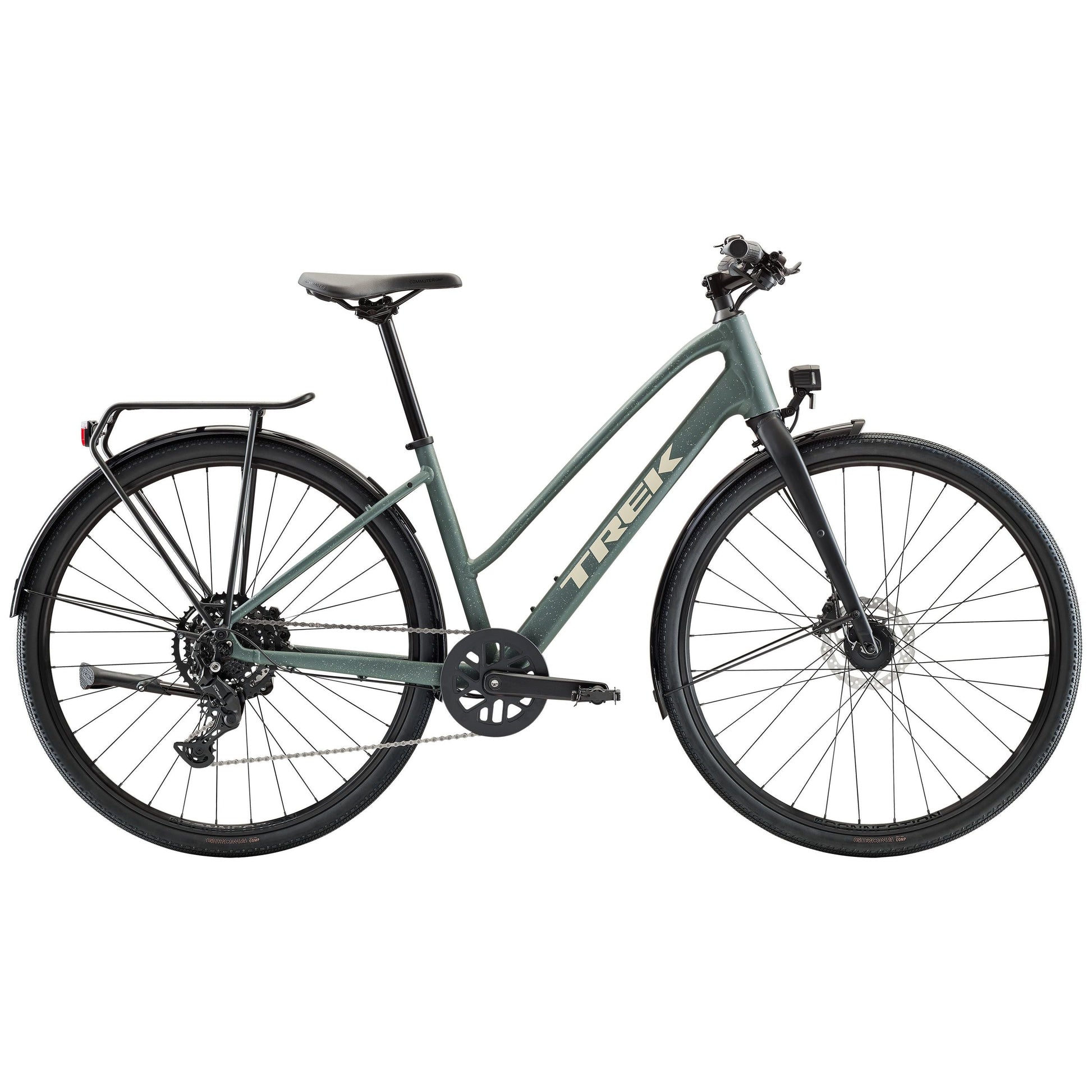 The FX Sport AL Equipped Midstep is a capable go-anywhere hybrid bike that's fun to ride on a variety of surfaces. It has a lightweight midstep frame, a sturdy drivetrain and loads of ride-ready accessories like a rear rack and lights. Its wide wheels and tyres soak up bumps and rough-terrain for a comfortable, confident ride on the road, light gravel trails, bike paths and more.